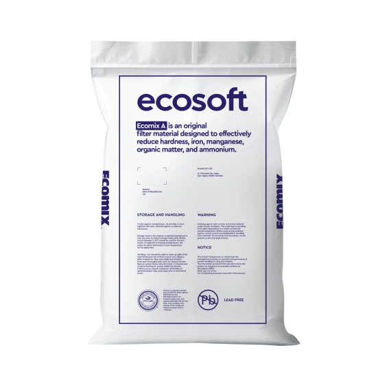 Фільтруючий матеріал Ecomix-A 12 л (ECOMIXA12) — це багатокомпонентна суміш для комплексного очищення води в побутових і комерційних системах водопідготовки. Призначений для обробки артезіанської та водопровідної води зі середнім вмістом органічних домішок, забезпечуючи одночасне видалення кількох типів забруднень.