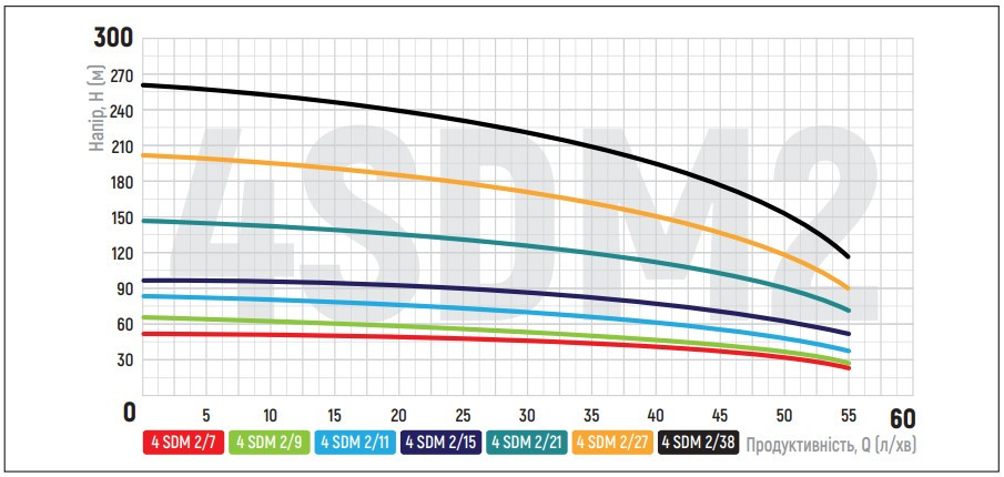 KOER 4SDM 2/21 + 50M — занурювальний свердловинний відцентровий насос для перекачування чистої прісної води у побутових і господарських водопровідних системах.