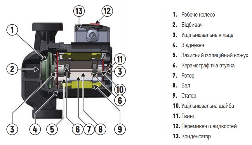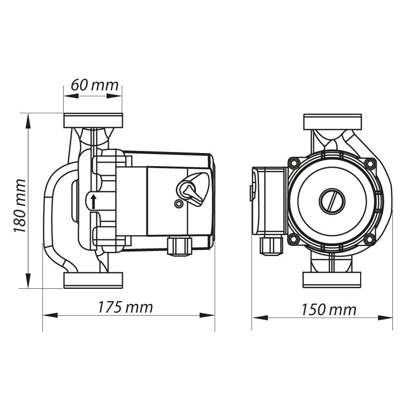 Насос має монтажну довжину 180 мм та стандартне різьбове підключення 2″, що забезпечує сумісність із поширеними трубними системами. Модель розрахована на роботу від однофазної мережі 220–240 В, 50 Гц та оснащена асинхронним двигуном із “мокрим” ротором і вбудованим термозахистом для запобігання перегріву, що дозволяє експлуатувати насос у тривалому режимі (S1). Споживана потужність становить 225 Вт, що відповідає побутовим вимогам для циркуляційних насосів цього класу. На третьому (найвищому) режимі роботи максимальний напір — 8 м. Максимальна продуктивність — 200 л/хв, що забезпечує ефективну циркуляцію теплоносія або гарячої води у системі. Насос підтримує три швидкості роботи, що дозволяє адаптувати продуктивність і тиск під поточну потребу системи. Продукт придатний для циркуляції чистої води або теплоносія з гліколевими домішками (до ~50 %) при робочій температурі до +110 °C.