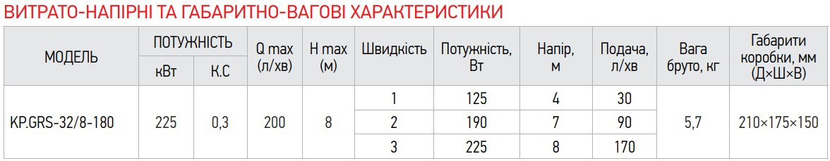 Насос циркуляційний відцентровий KOER KP.GRS-32/8-180 (з гайками, кабелем та вилкою) (KP0252)