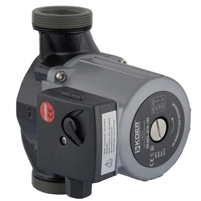 KOER KP.GRS‑32/8‑180 — циркуляційний відцентровий насос з комплектом монтажних гайок, кабелем живлення та вилкою, призначений для примусової циркуляції теплоносія або води в закритих системах опалення, гарячого водопостачання та підігріву підлог. Такий насос забезпечує рівномірний рух рідини, що сприяє підвищенню ефективності теплообміну в побутових та господарських контурах.