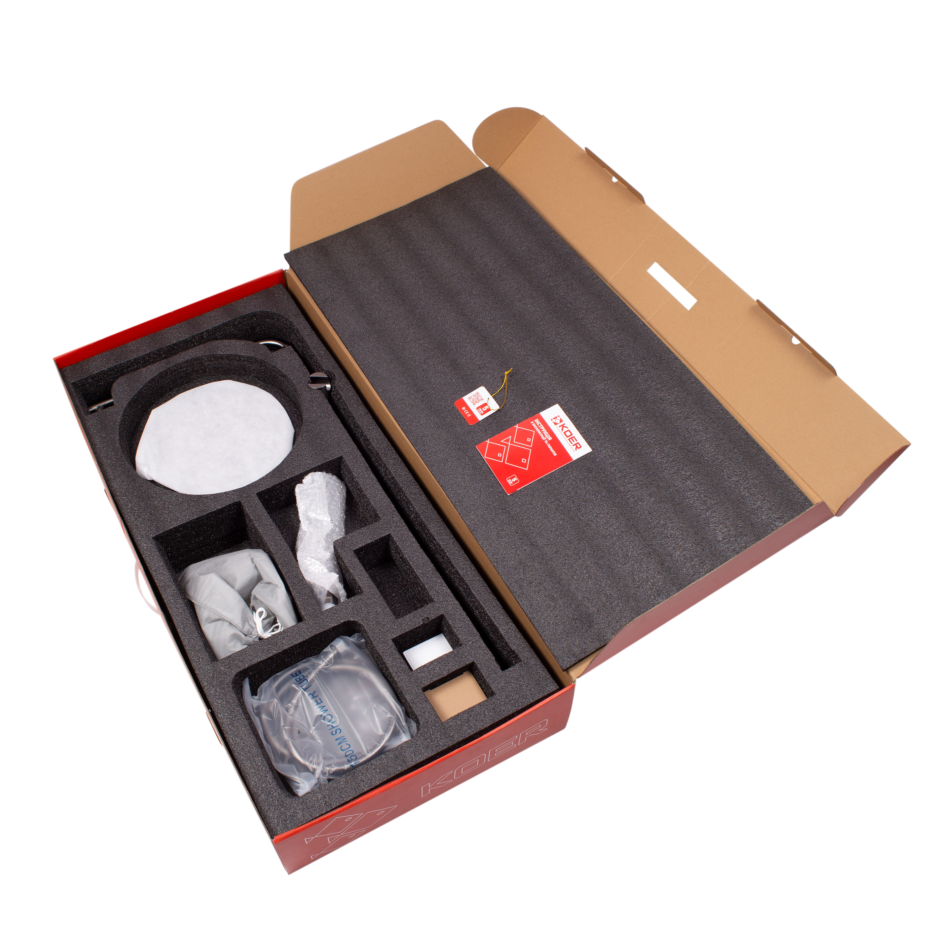 Шланг, ручная лейка, потолочная лейка, чашки, эксцентрики, резиновые прокладки, держатель для лейки