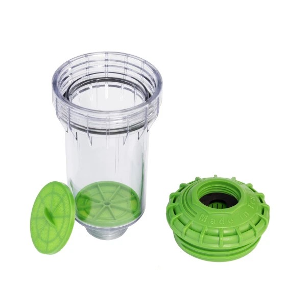 Корпус фильтра выполнен в виде компактной полимерной колбы с резьбовым подключением 3/4", что обеспечивает совместимость с большинством стандартных подводок для стиральных машин. Устройство рассчитано на рабочее давление воды до 6 бар. Фильтр предназначен для использования с холодной водой температурой приблизительно от +4 до +30 °C, тогда как вода после нагревания накипи.