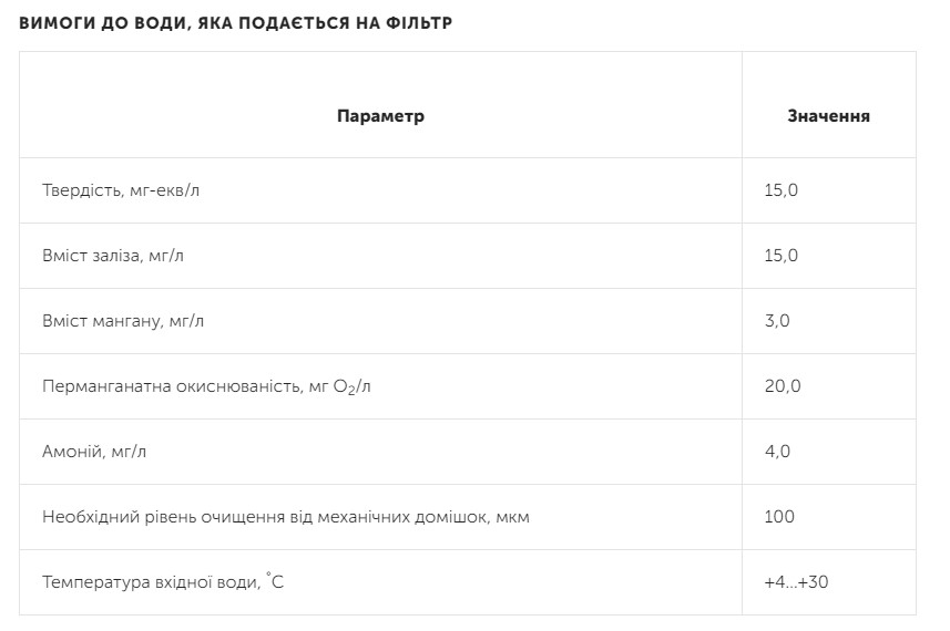 Результат работы фильтра ощутим сразу: вода лишается желтого оттенка, неприятного запаха и привкуса, становится безопасной для кожи и волос, а накипь на нагревательных элементах бытовых приборов больше не образуется. Такая вода отвечает самым высоким требованиям как для питьевых, так и для хозяйственно-бытовых нужд. Система подходит для частных домов, коттеджей и объектов коммерческого водоснабжения. Питание автоматики – 230 В/50 Гц с потребляемой мощностью около 30 Вт. Габариты установленной системы – примерно 155 на 75 на 45 см, вес без воды – около 75 кг.