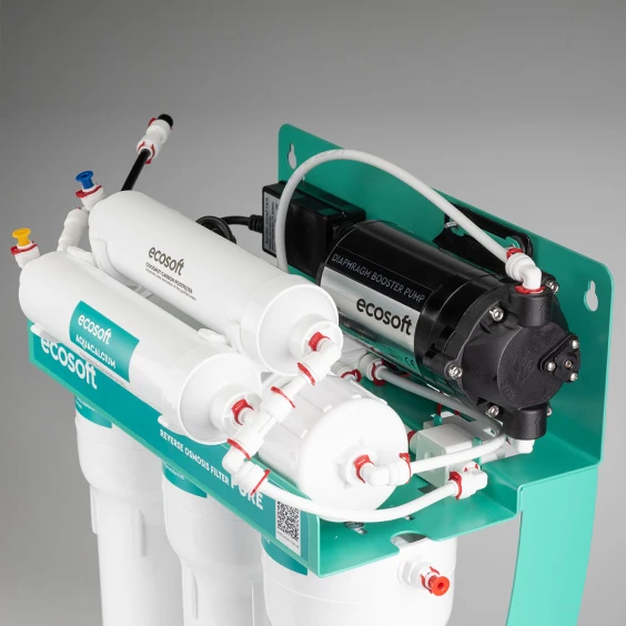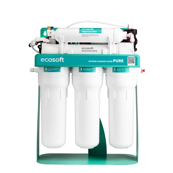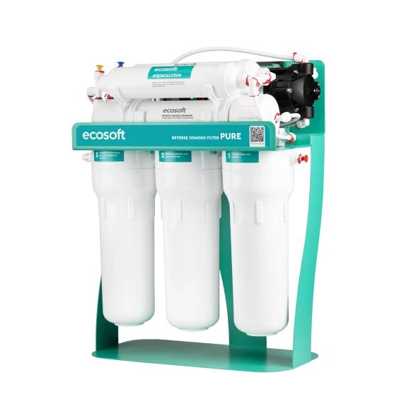 Фильтр обратного осмоса Ecosoft PURE AquaCalcium MINT с насосом на станине (MO675PSMACECO) — бытовая система очистки воды премиального уровня, предназначенная для получения стабильной по составу питьевой воды с контролируемой минерализацией. Модель оснащена повышающей помпой и смонтирована на металлической станине, что обеспечивает стабильную работу при пониженном или нестабильном давлении водопровода.