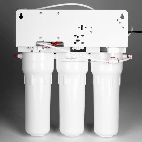 Очистка происходит последовательно: предварительные картриджи механической и угольной фильтрации удаляют песок, ржавчину, хлор и органические примеси, после чего мембрана с производительностью 50 GPD (до 190 л/сут) обеспечивает глубокую очистку от растворенных солей, тяжелых металлов, нитратов, бактерий. Уровень задержания примесей достигает высоких значений, включая уменьшение содержания PFAS до 99%.