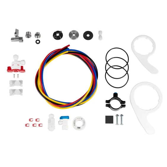 Конструкция предусматривает установку под мойкой и подключение к холодной воде. В комплект входят 7 л накопительный бак, отдельный кран для очищенной воды, комплект подключения и сервисные инструменты. Корпус выполнен из пищевого пластика, совместимого с питьевой водой.