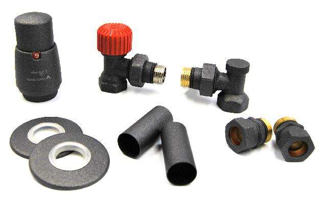 Комплект термостатический Vario Term ROYAL, угловой, матовый черный (ROGS0224CFK)