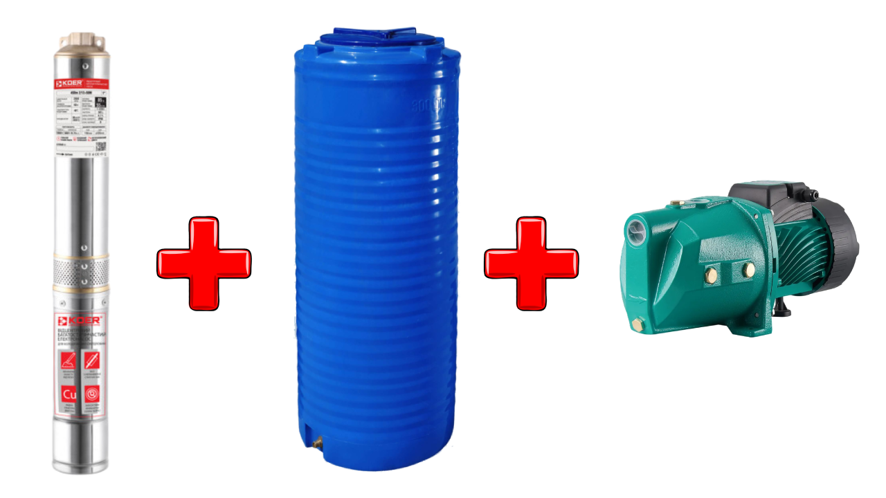 Свердловина + накопичувальна ємність + окремий насос у будинок.